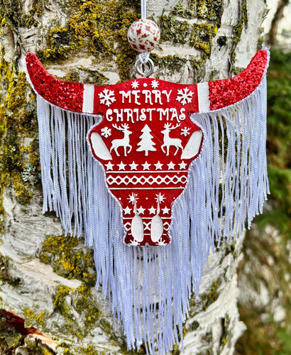Western Christmas Bull Skull *Car Freshie*