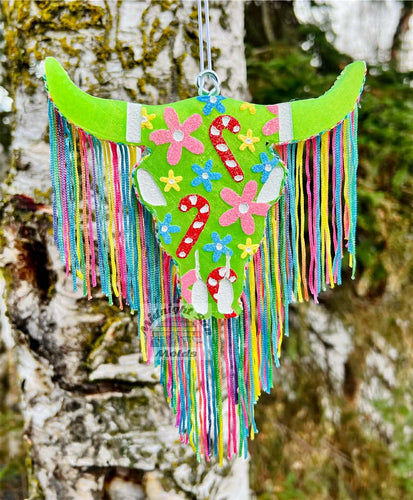 Floral Candy Cane Bull Skull *Car Freshie*